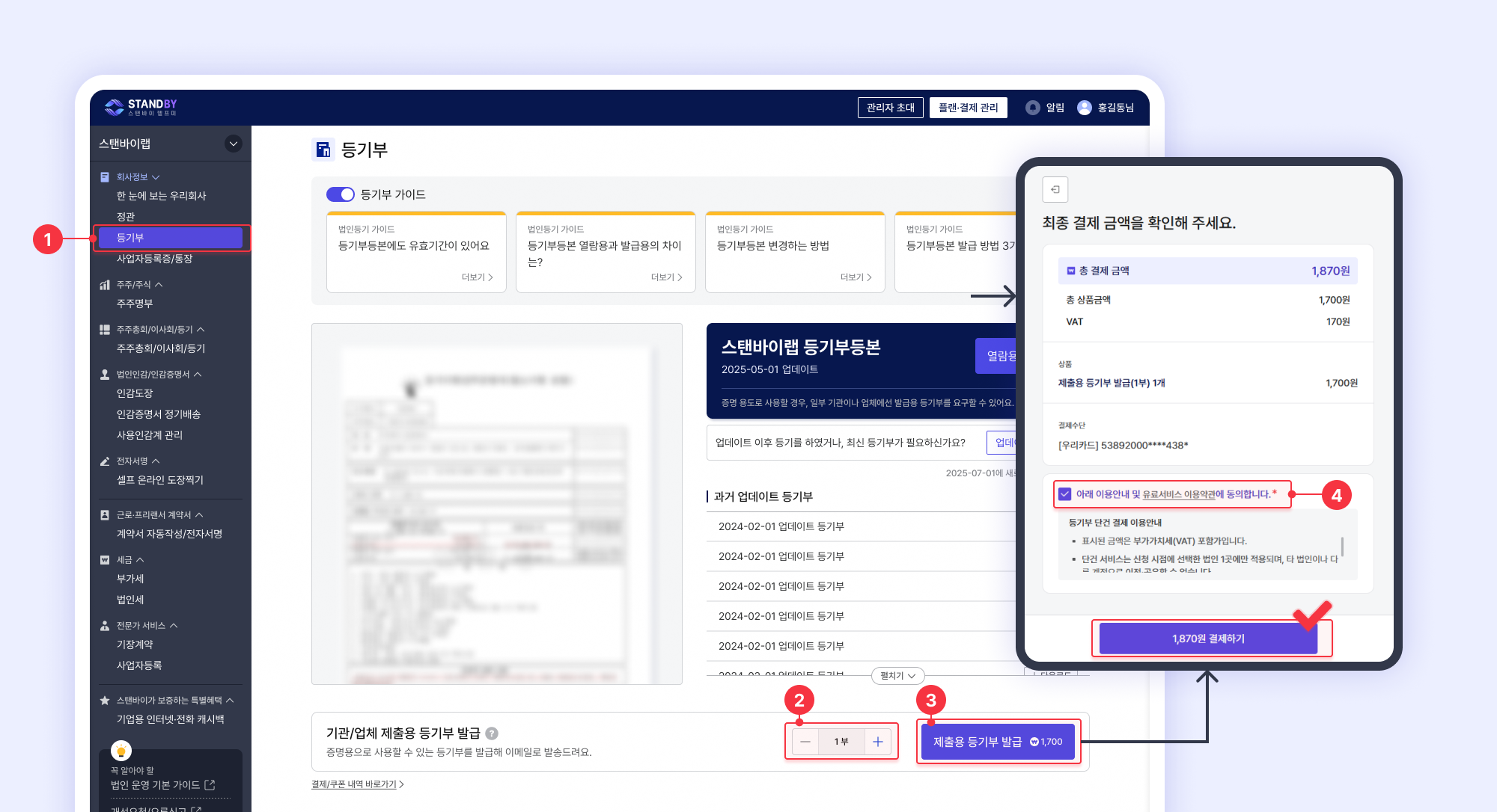 최신 등기부로 업데이트 해, 다운로드 및 스탠바이 정보 최신화가 가능해요.
