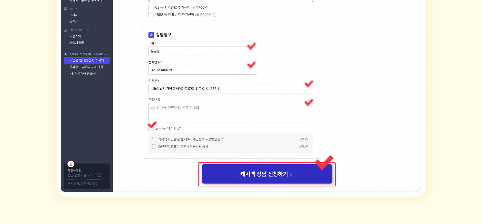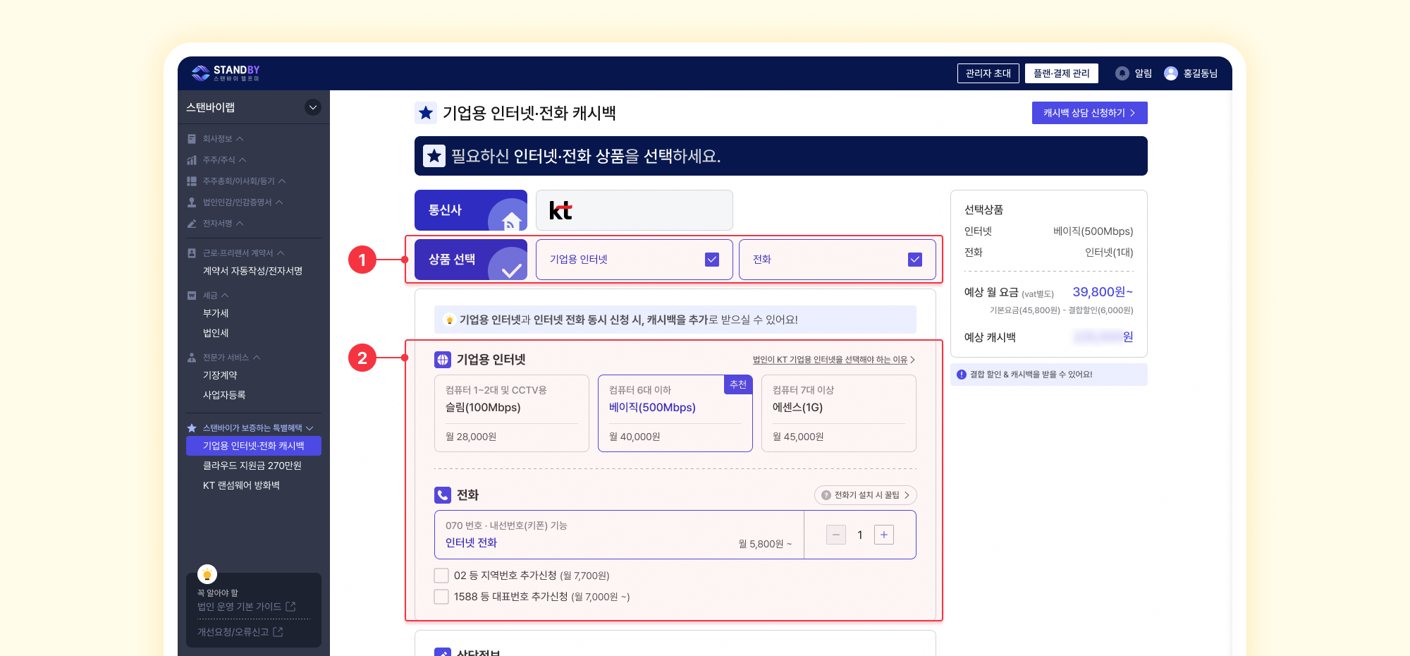 전국 최초, 스탠바이 회원만 누릴 수 있는 기업용 인터넷·전화 최대 캐시백 혜택을 놓치지 마세요!